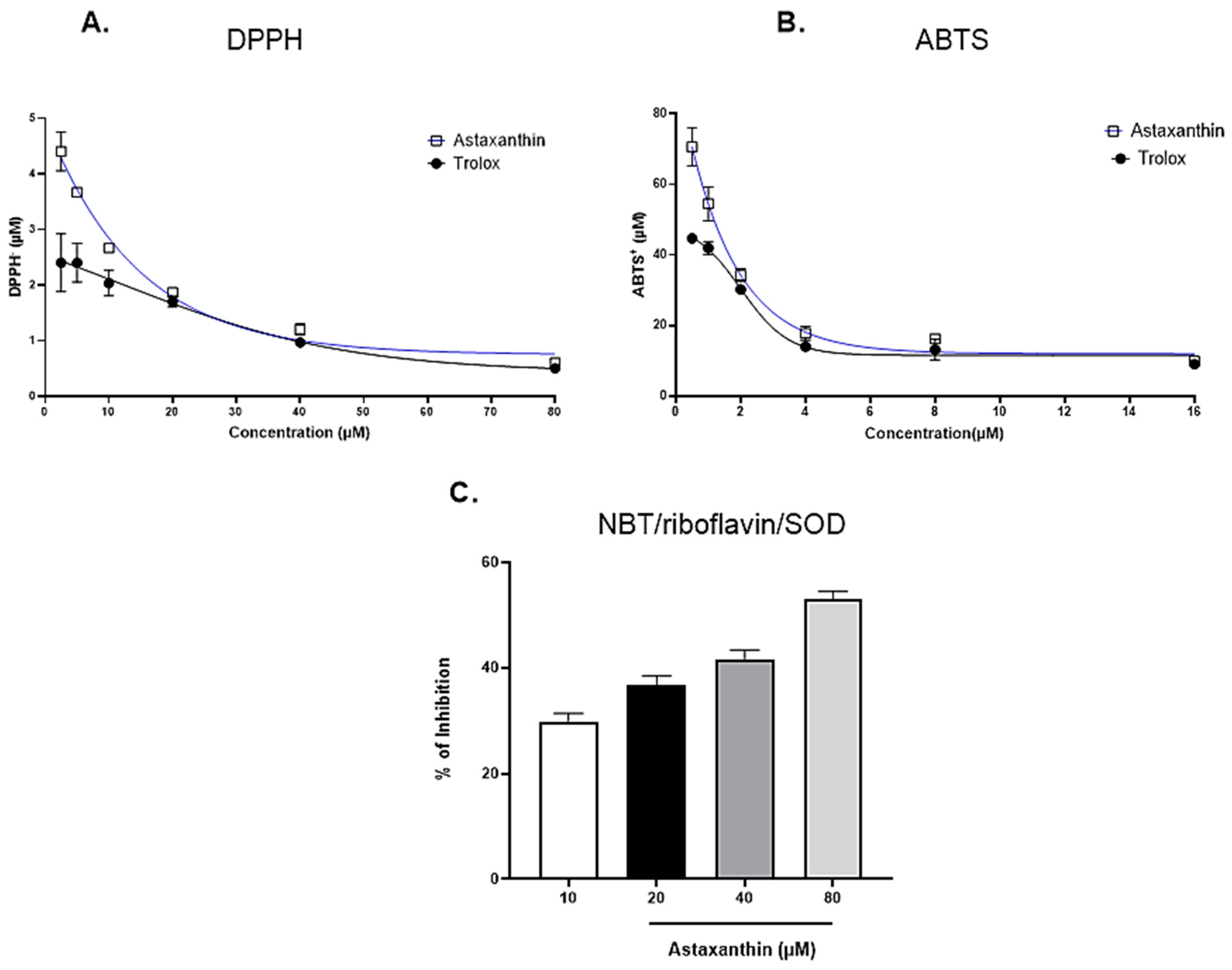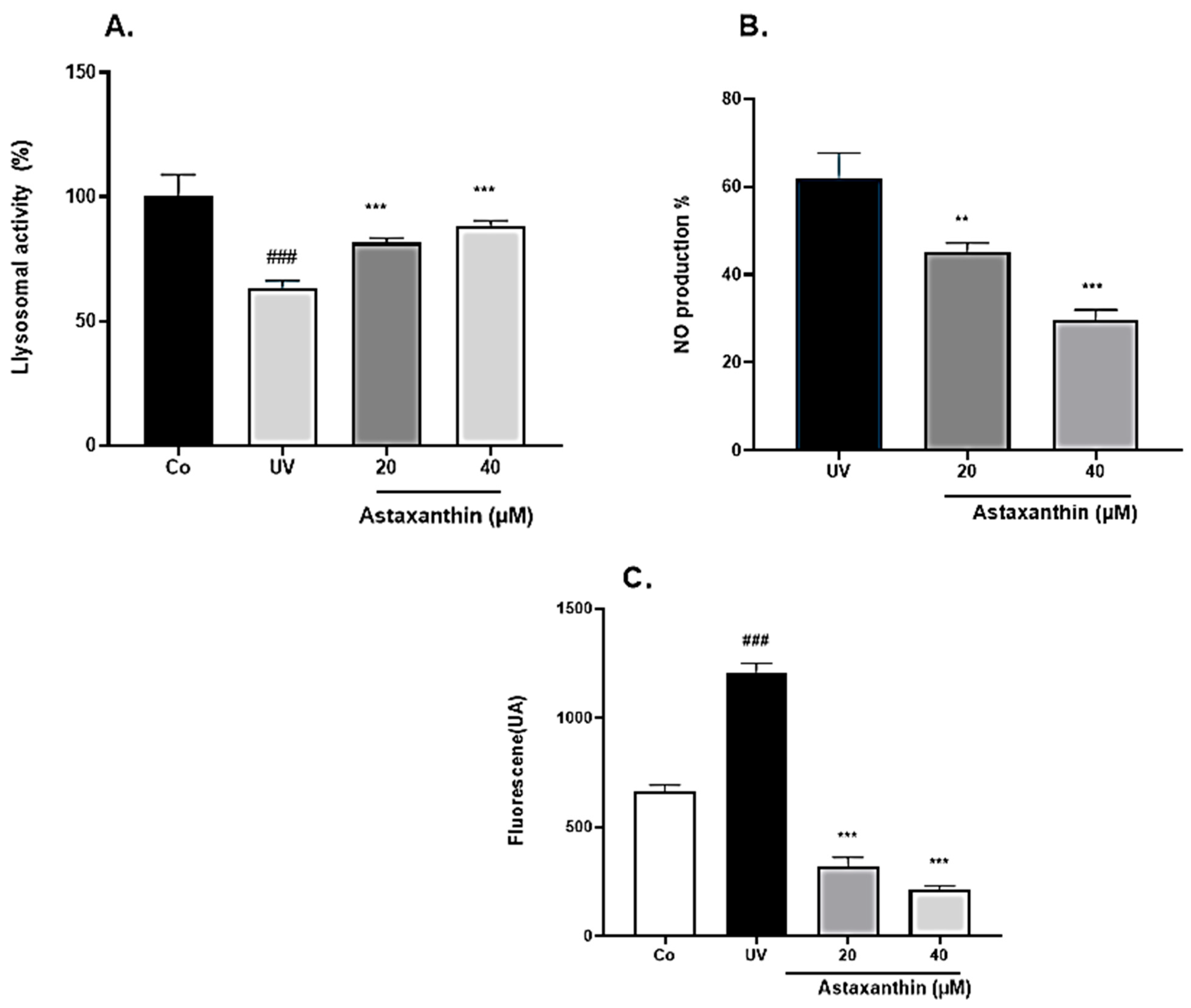 3.10. Effect of Astaxanthin on Nitric Oxide Production in UV-Treated HaCaT Cells