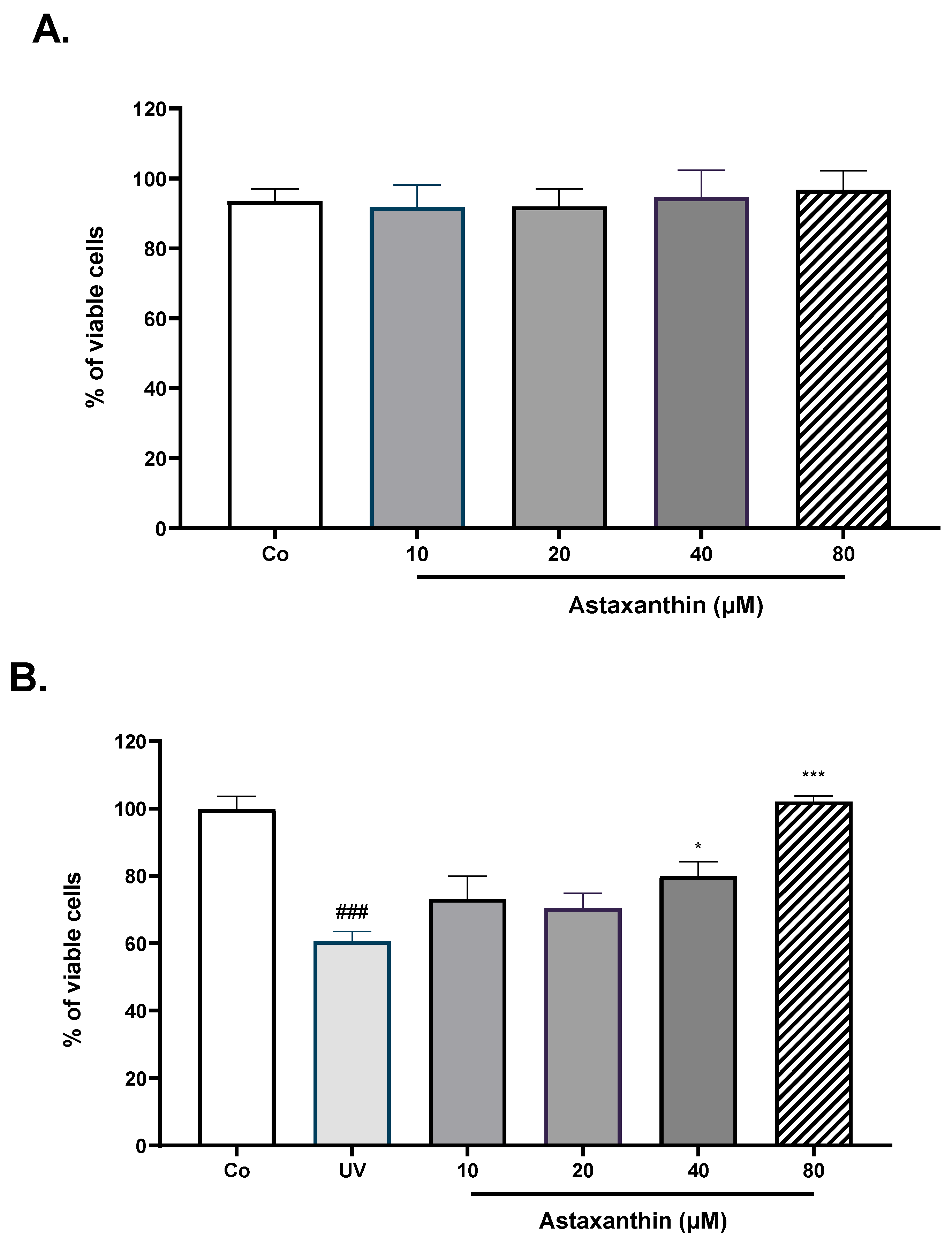3.5. Protective Effect of Astaxanthin on UVB-Induced Cytotoxicity