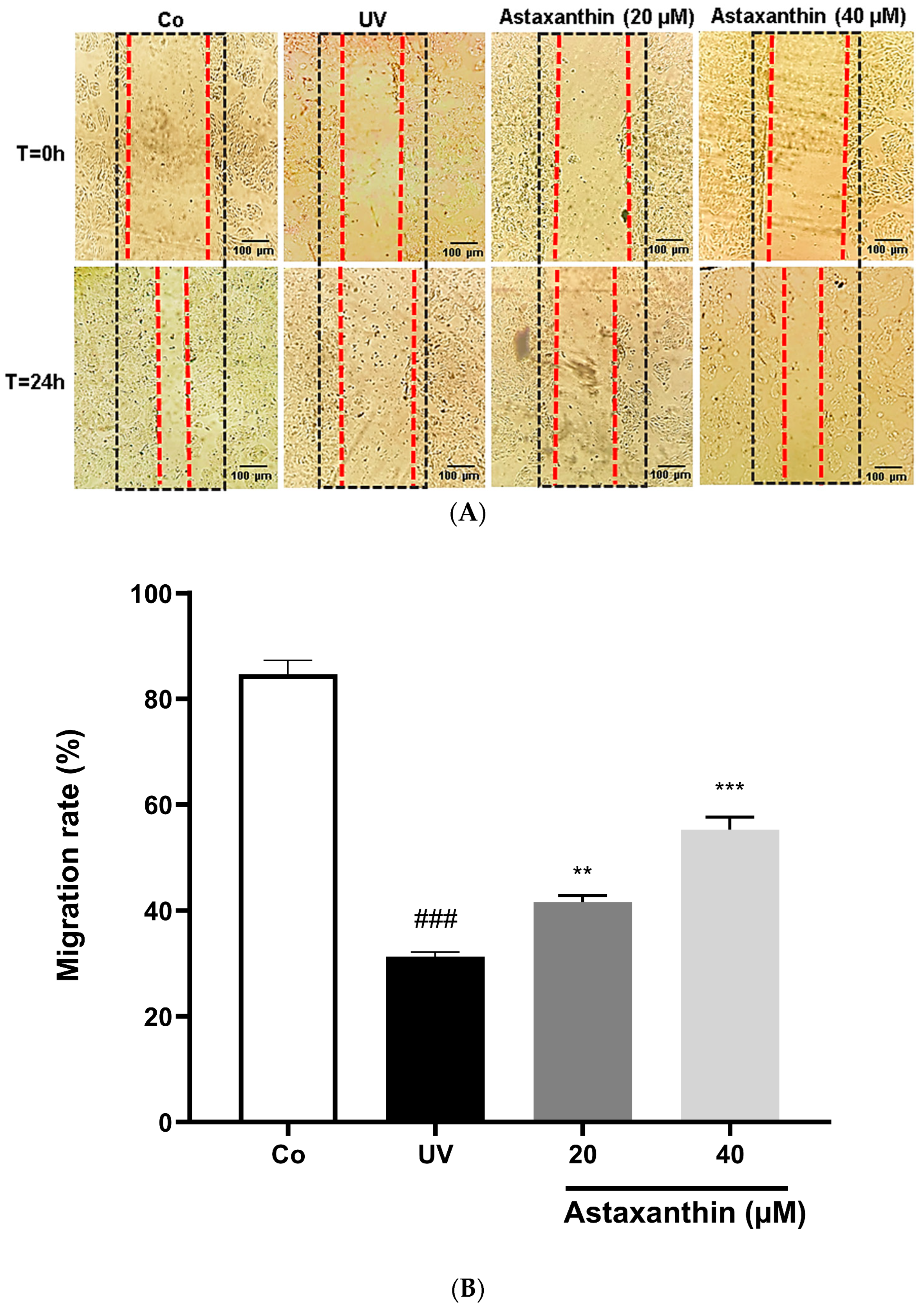 3.6. Effect of Astaxanthin on UVB-Treated Cell Migration