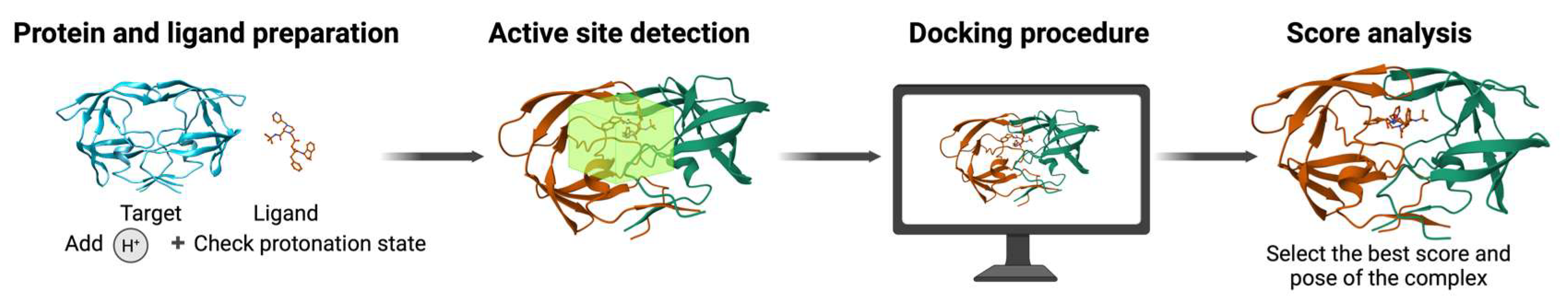 - Kabier, M.; Gambacorta, N.; Trisciuzzi, D.; Kumar, S.; Nicolotti, O.; Matthew, B. MzDOCK: A Free Ready-to-Use GUI-Based Pipeline for Molecular Docking Simulations. J. Comput. Chem. 2025, 45, 1980–1986. [Google Scholar] [CrossRef] [PubMed]