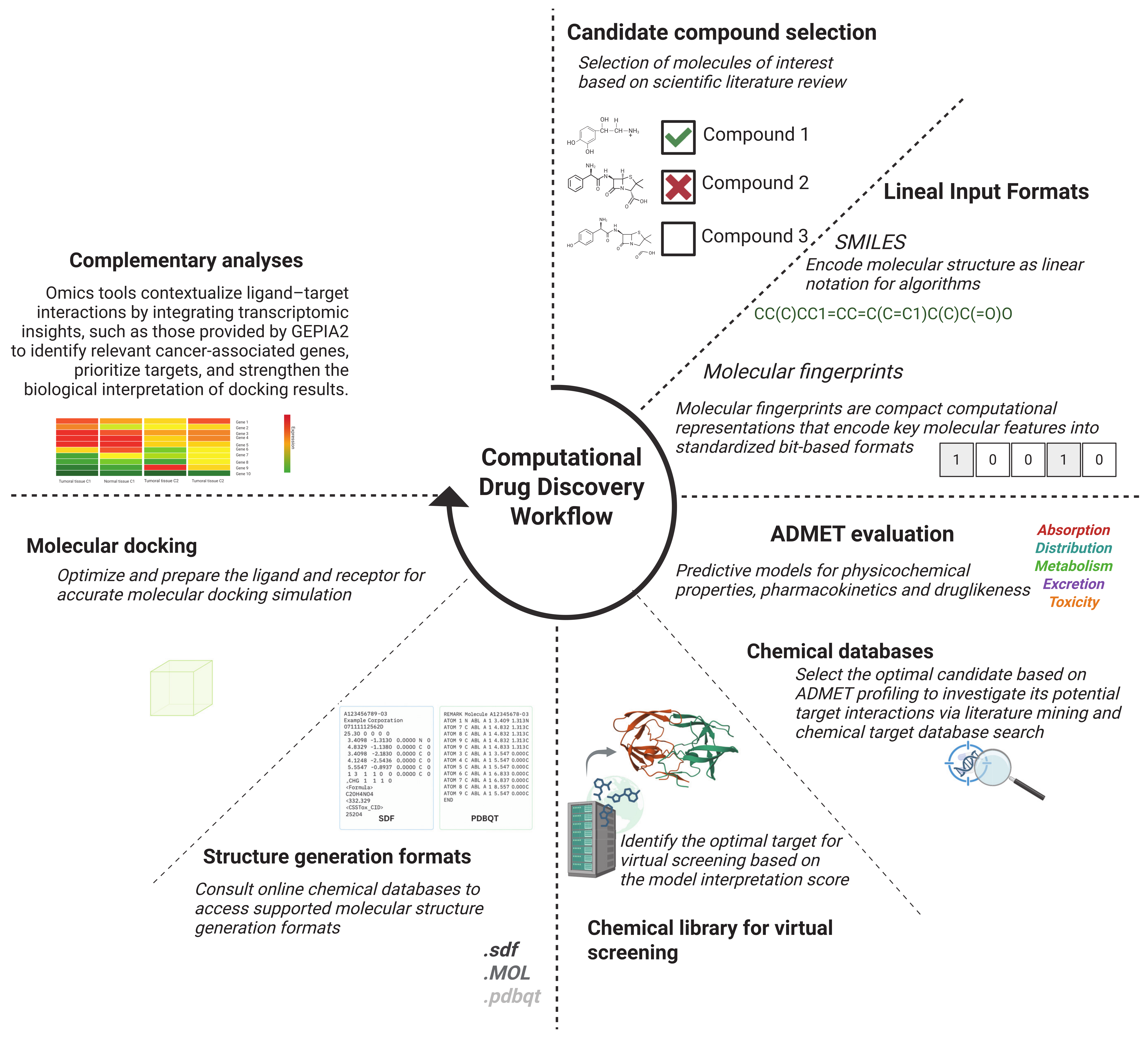 Chicago/Turabian StyleGarcía-Díaz, Jesus Magdiel, Asbiel Felipe Garibaldi-Ríos, Martha Patricia Gallegos-Arreola, Filiberto Gutiérrez-Gutiérrez, Jorge Iván Delgado-Saucedo, Moisés Martínez-Velázquez, and Ana María Puebla-Pérez. 2026. "Computational Workflow for Chemical Compound Analysis: From Structure Generation to Molecular Docking" Scientia Pharmaceutica 94, no. 1: 9. https://doi.org/10.3390/scipharm94010009