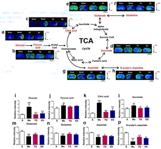 2.3.1. Effect of Thymoquinone Treatment on Aerobic Oxidation-Related Small Molecules in the Damaged Brain