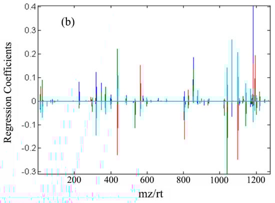 - Westerhuis, J.; Van Velzen, E.J.; Hoefsloot, H.J.; Smilde, A. Discriminant Q2 (DQ2) for improved discrimination in PLSDA models. Metabolomics 2008, 4, 293–296. [Google Scholar] [CrossRef]