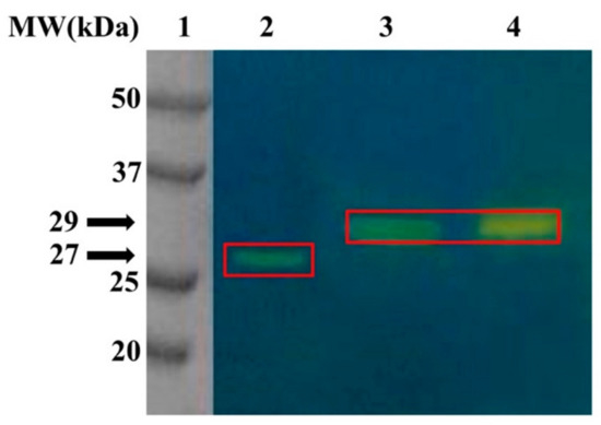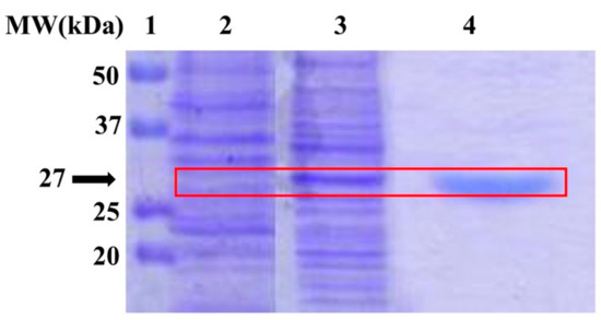 - Laemmli, U.K. Cleavage of structural proteins during the assembly of the head of bacteriophage T4. Nature 1970, 227, 680–685. [Google Scholar] [CrossRef] [PubMed]