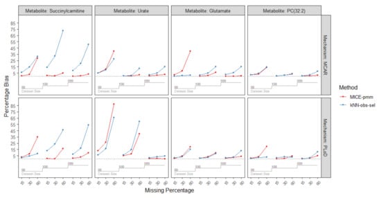 | Missing Mechanism | Sample Size | Missing Percentage | Metabolites/Imputation Method | |||||||||||