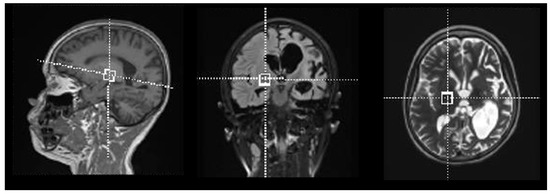Brain MRI and MRS were acquired on a 3T scanner (Siemens Magnetom Skyra, Siemens Medical Systems, Erlangen, Germany) equipped with a 32-channel head-coil. Each participant received a single voxel point resolved MRS sequence PRESS (TR: 1980 ms, TE: 30 ms, FA: 90 degrees, Number of averages: 120), with different sizes of VOI (ranging from 3 to 8 cm3, depending on brain dimensions) located in the ganglio-capsular region of the right hemisphere (Figure 1). The area was chosen based upon optimal shimming with similar concentrations as in cortex and for its reproducibility [40]. All examinations were performed under sedation via Sevorane. All the acquisitions were performed after an automatic second order shimming on the volume of interest, and a visual inspection on the inline display was used to check for data quality. Water suppression was also applied as implemented in the Siemens platform to avoid baseline distortion. A further unsuppressed water spectrum with only 16 averages was acquired for reference purposes.