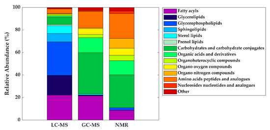 Distribution of metabolite classes annotated and/or identified in HM according to technique. Note: GC-MS, gas chromatography—mass spectrometry; LC-MS, liquid chromatography—mass spectrometry; NMR, nuclear magnetic resonance.