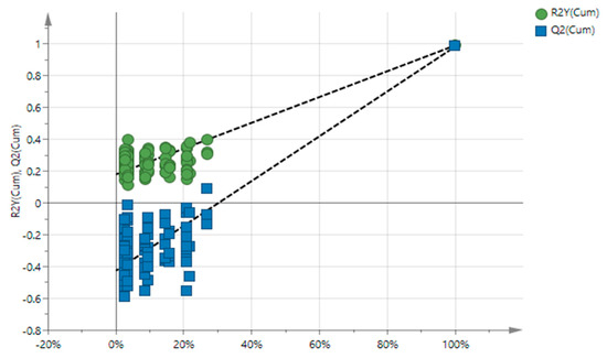 Permutation plot of the PLS model (R2 = 0.95%, Q2 = 0.98).