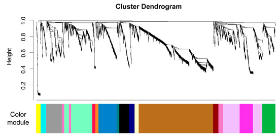 - Langfelder, P.; Horvath, S. WGCNA: An R package for weighted correlation network analysis. BMC Bioinform. 2008, 9, 559. [Google Scholar] [CrossRef]