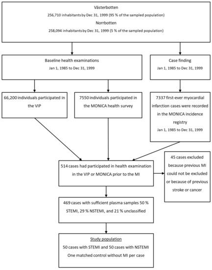 - Stegmayr, B.; Lundberg, V.; Asplund, K. The events registration and survey procedures in the Northern Sweden MONICA Project. Scand. J. Public Health 2003, 31, 9–17. [Google Scholar] [CrossRef]