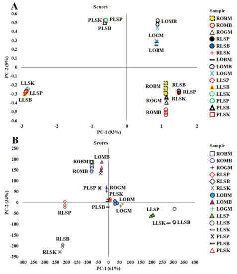 - Stocchero, M.; Locci, E.; d’Aloja, E.; Nioi, M.; Baraldi, E.; Giordano, G. PLS2 in metabolomics. Metabolites 2019, 9, 51. [Google Scholar] [CrossRef] [PubMed]