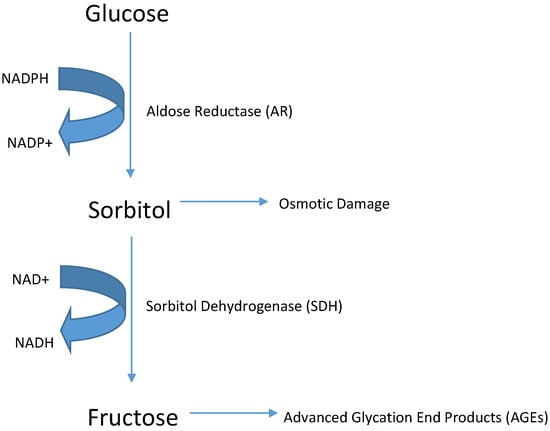 - Greene, D.A.; Lattimer, S.A.; Sima, A.A. Sorbitol, Phosphoinositides, and Sodium-Potassium-ATPase in the Pathogenesis of Diabetic Complications. N. Engl. J. Med. 1987, 316, 599–606. [Google Scholar] [CrossRef]