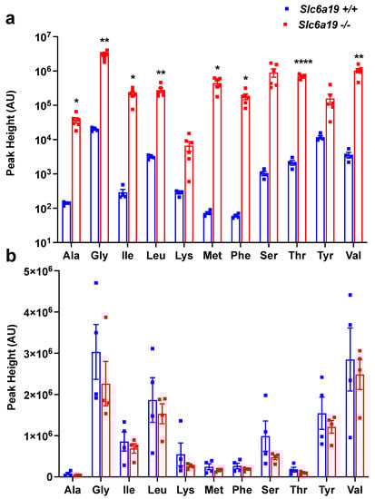 - Javed, K.; Broer, S. Mice Lacking the Intestinal and Renal Neutral Amino Acid Transporter SLC6A19 Demonstrate the Relationship between Dietary Protein Intake and Amino Acid Malabsorption. Nutrients 2019, 11, 2024. [Google Scholar] [CrossRef] [Green Version]