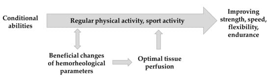 Many authors support that regular, low-intensity exercise activity has value for “hemorheological fitness”. As a result of training, the expansion of blood volume, particularly plasma volume, results in better fluidity of the athletes’ blood [15,16,17,21].