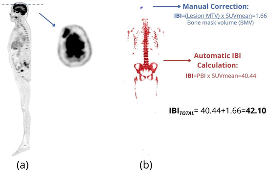 IBI is calculated as PBI multiplied by its SUVmean. Thus, IBI also takes into account the intensity of radiotracer uptake by the lesions. If PBI is similar to MTV, then the IBI is similar to TLG normalized by the bone and bone marrow volume of the patient.