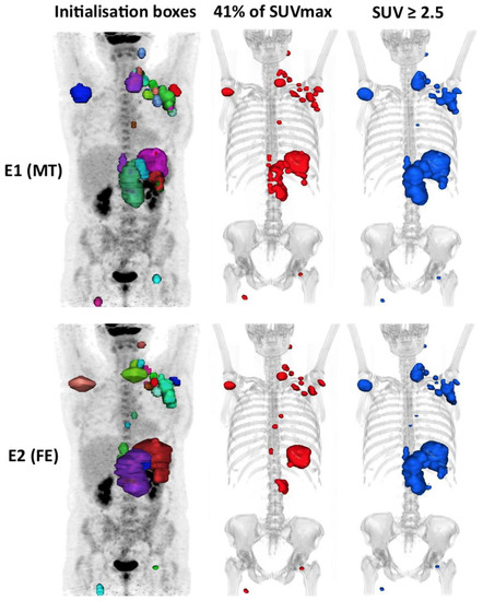 Currently, the most widely used method, especially in clinical studies, is 41% SUVmax. Indeed, Meignan et al. (2014) concluded that the high reproducibility of the MTV determined by the 41% SUVmax method was associated with a good prognosis [23].