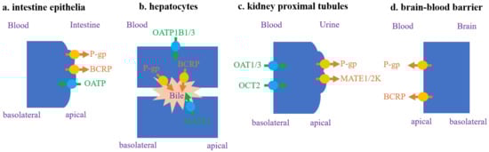 - Shitara, Y.; Maeda, K.; Ikejiri, K.; Yoshida, K.; Horie, T.; Sugiyama, Y. Clinical significance of organic anion transporting polypeptides (OATPs) in drug disposition: Their roles in hepatic clearance and intestinal absorption. Biopharm. Drug Dispos. 2013, 34, 45–78. [Google Scholar] [CrossRef]