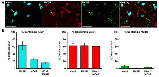 2.2. Colocalization of Kisspeptin, MC3R, and MC4R