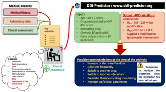 Moreau F, Simon N, Walther J, Dambrine M, Kosmalski G, Genay S, Perez M, Lecoutre D, Belaiche S, Rousselière C, et al. Does DDI-Predictor Help Pharmacists to Detect Drug-Drug Interactions and Resolve Medication Issues More Effectively? Metabolites. 2021; 11(3):173. https://doi.org/10.3390/metabo11030173