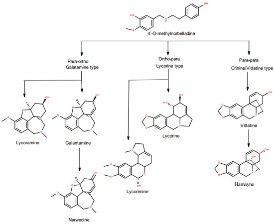 - Takos, A.M.; Rook, F. Towards a Molecular Understanding of the Biosynthesis of Amaryllidaceae Alkaloids in Support of Their Expanding Medical Use. Int. J. Mol. Sci. 2013, 14, 11713–11741. [Google Scholar] [CrossRef]