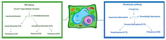 Schematic representation of terpenes biosynthetic pathways in the plant cell.