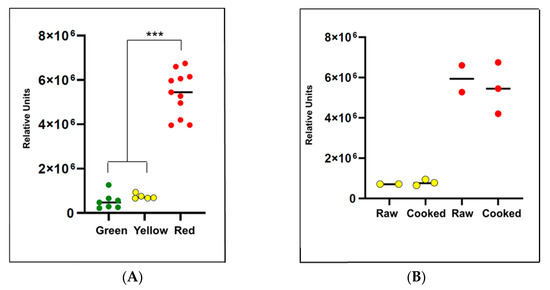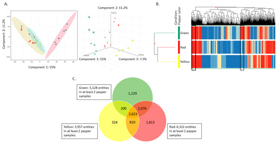 2.3. Untargeted Lipidomics Reveals Several Compounds That Differ between Green, Red, and Yellow Peppers