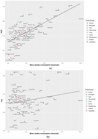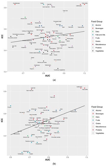 - Rimm, E.B.; Giovannucci, E.L.; Stampfer, M.J.; Colditz, G.A.; Litin, L.B.; Willett, W.C. Reproducibility and validity of an expanded self-administered semiquantitative food frequency questionnaire among male health professionals. Am. J. Epidemiol. 1992, 135, 1114–1126; discussion 1127–1136. [Google Scholar] [CrossRef]