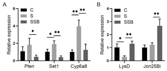 - Wong, A.C.; Dobson, A.J.; Douglas, A.E. Gut microbiota dictates the metabolic response of Drosophila to diet. J. Exp. Biol. 2014, 217, 1894–1901. [Google Scholar] [CrossRef]