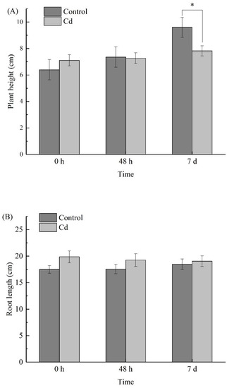 2.1. Changes of Cd Content under Cd Stress at Different Times