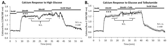 2.3. Intracellular Calcium Is Maximally Stimulated in 24 mM Glucose
