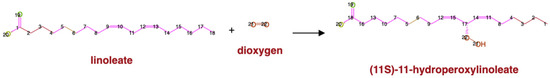 Atom mappings of MetaCyc reaction RXN-14940 (https://metacyc.org/META/NEW-IMAGE?object=RXN-14940&&redirect=T accessed on 1 April 2021).