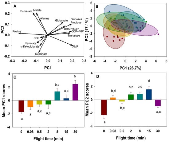 - Candy, D.J.; Becker, A.; Wegener, G. Coordination and integration of metabolism in insect flight. Comp. Biochem. Physiol. B 1997, 117, 497–512. [Google Scholar] [CrossRef]