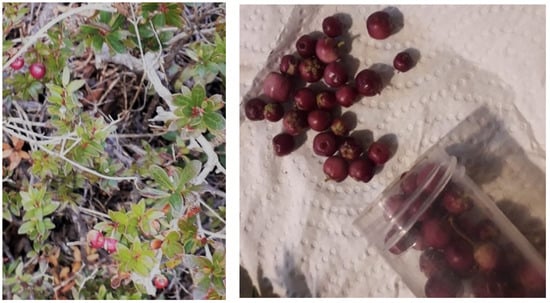 Gaultheria pumila is a native small bush (2–3 cm tall) that produces a tasty, aromatic, and flavored fruit popularly known as “Chaura” or “Mutilla” and is consumed by local Mapuche communities (Figure 1).