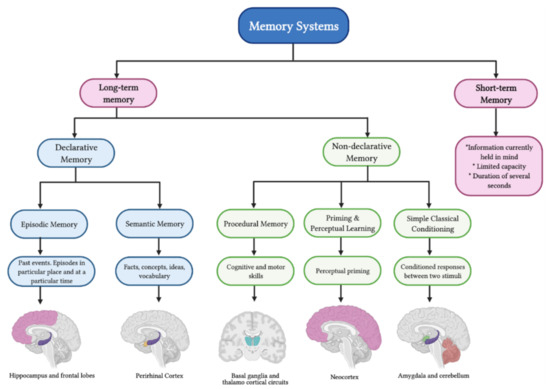 - Squire, L.R. Divisions of Long-Term Memory. In Memory and Brain; Oxford University Press Inc.: New York, NY, USA, 1987; pp. 151–174. Available online: https://ebookcentral.proquest.com/lib/kaust-ebooks/detail.action?docID=272279 (accessed on 28 February 2021).
