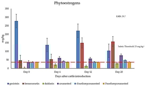 2.4. Quantification of Phytoestrogens in Plasma Samples of Grazing Cattle