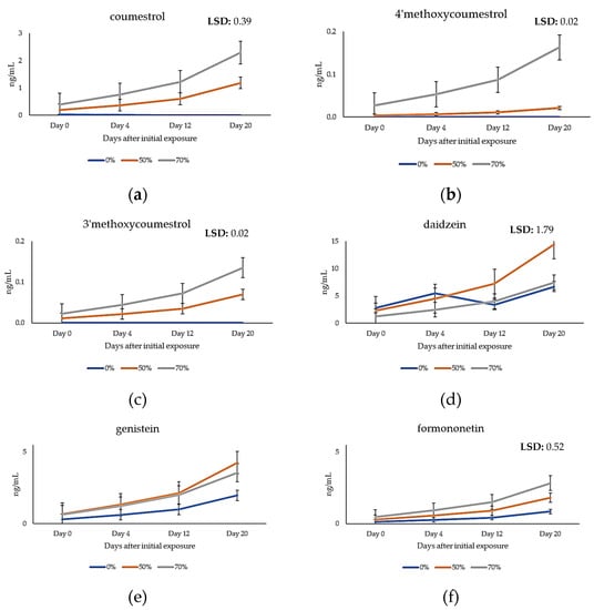 | 4′methoxycoumestrol | ND | 0.015 ± 0.01 | ND | 0.030 ± 0.01 | ND | 0.049 ± 0.01 | ND | 0.092 ± 0.08 |