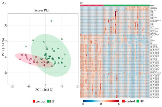 PCA showed distinct and overlapping metabolites of control and HF, with a visible differentiation between the two groups (Figure 2A).