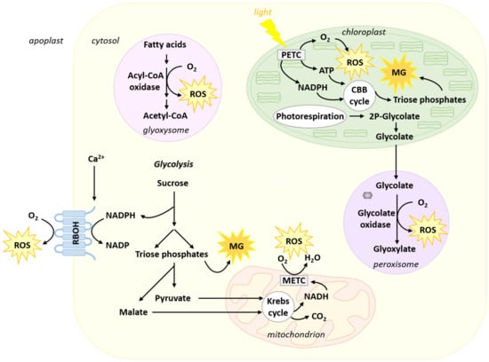 2. Origin of Reactive Oxygen Species and Methylglyoxal in Plant Cells