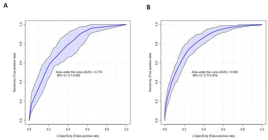 To determine whether injury severity, as assessed by the NISS, or metabolites, detected in the acute post-injury phase, could be of prognostic value, we examined the ability of the eleven features selected from our PLS-DA model (Figure 2B) to discriminate between patients with a short or prolonged ICU LOS. The AUROC values for each element are provided in Table 2. As single variables, NISS produced the highest AUROC value of 0.69. A combined model of NISS and testosterone, the two features that demonstrated the greatest discriminatory power as single variables, generated an AUROC of 0.77 (Figure 3A). A model constructed on all nine selected metabolites alone achieved an AUROC of 0.78, which increased to 0.824 when combined with NISS (Figure 3B).