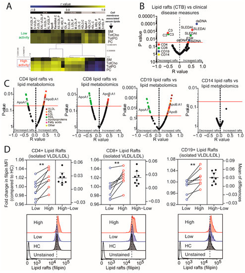 2.3. Lipid Raft Signalling Platforms Correlate with Lipoprotein Expression in Active JSLE Patients