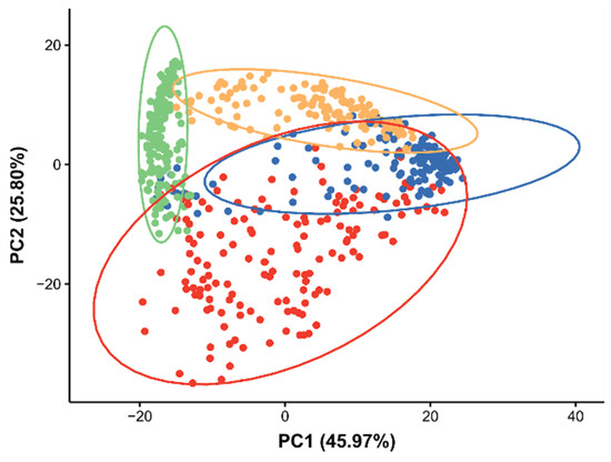 - Benjamini, Y.; Hochberg, Y. Controlling the False Discovery Rate: A Practical and Powerful Approach to Multiple Testing. J. R. Stat. Soc. 1995, 57, 289–300. [Google Scholar] [CrossRef]