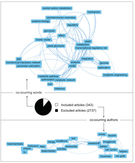 | 1. Development of a search query | A search query was designed and implemented in the Scopus database document search. The time range selected was 2000–2020 to obtain a workable library size and relevant to the publication time. This query aimed to find all papers relevant to kinetic metabolic models of S. cerevisiae. Areas of uncertainty in models was an area of focus as well. The search query is: (TITLE-ABS-KEY (kinet* OR dynam* OR biochem*) AND TITLE-ABS-KEY (metabol*) AND TITLE-ABS-KEY (model* OR network*) AND TITLE-ABS-KEY (yeast OR “baker’s yeast” OR cerevisiae) AND TITLE-ABS-KEY ((paramet* OR structur* OR topolog* OR “in vivo” OR “in vitro”) AND (uncertain* OR sensitiv* OR crosstalk OR burden OR likelih* OR control OR energ* OR ptm OR transcription* OR translation* OR regulat* OR interact* OR multilevel)) OR TITLE-ABS-KEY ((paramet* OR structur* OR topolog* OR “in vivo” OR “in vitro” OR regulat* OR interact* OR multilevel) AND (uncertain* OR sensitiv* OR crosstalk OR burden OR likelih* OR control OR energ* OR ptm OR transcription* OR translation*))) AND DOCTYPE (ar OR re) AND PUBYEAR > 1999. |