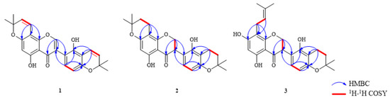 Key HMBC and 1H-1H COSY correlations for compounds 1–3.