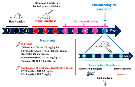 Quinto-Ortiz, Y.E.; González-Trujano, M.E.; Sánchez-Jaramillo, E.; Moreno-Pérez, G.F.; Jacinto-Gutiérrez, S.; Pellicer, F.; Fernández-Guasti, A.; Hernandez-Leon, A. Pharmacological Interaction of Quercetin Derivatives of Tilia americana and Clinical Drugs in Experimental Fibromyalgia. Metabolites 2022, 12, 916. https://doi.org/10.3390/metabo12100916