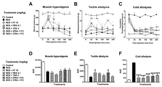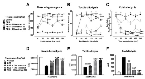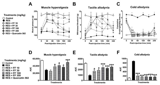 3.2.1. Antinociceptive Effects of Tilia Extract (TE) and Flavonoid Fraction of Tilia (FF)