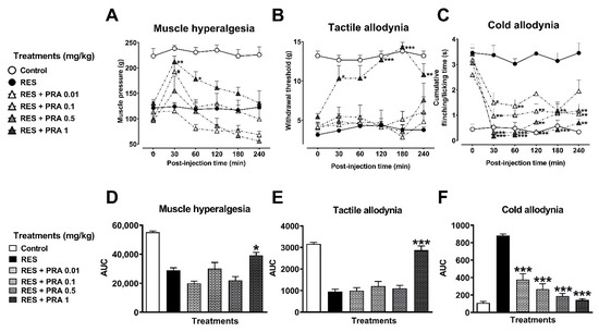 3.2.2. Antihyperalgesic and Antiallodynic Effects of Tramadol (TRA) and Pramipexole (PRA)