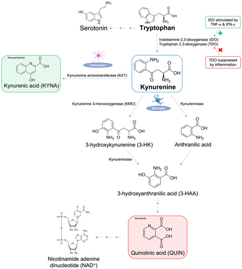 - Savitz, J. The kynurenine pathway: A finger in every pie. Mol. Psychiatry 2020, 25, 131–147. [Google Scholar] [CrossRef] [PubMed]