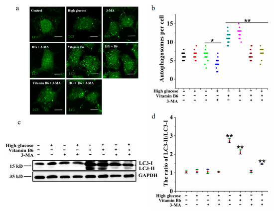 3.5. 3-MA Inhibited Vitamin B6-Induced Autophagy under High Glucose Stress