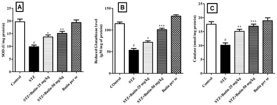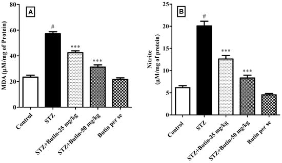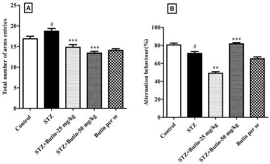 Chicago/Turabian StyleOmer, Asma B., Mahmood Hassan Dalhat, Mohammad Kaleem Khan, Obaid Afzal, Abdulmalik S. A. Altamimi, Sami I. Alzarea, Waleed Hassan Almalki, and Imran Kazmi. 2022. "Butin Mitigates Memory Impairment in Streptozotocin-Induced Diabetic Rats by Inhibiting Oxidative Stress and Inflammatory Responses" Metabolites 12, no. 11: 1050. https://doi.org/10.3390/metabo12111050
