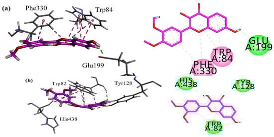 Results of the cholinesterase inhibition assays is summarized in (Table 1). In cholinesterase, our tested flavone exhibited dose-dependent inhibitory activity against acetylcholinesterase (AChE) and butyrylcholinesterase (BChE) enzymes. The observed IC50 values of our isolated flavone were 1.37 and 0.95 µM against acetyl and butyrylcholiesterase enzymes, respectively. This activity was compared with the standard galantamine. Galantamine, under the same set of observations, exhibited IC50 values of 5.11 and 15.29 µM against acetyl and butyrylcholiesterase enzymes, respectively. Our isolated natural flavone was found to be more potent compared to the standard drug galantamine.